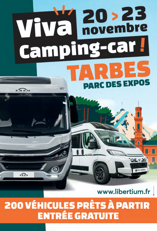 C’est LE rendez-vous à ne pas manquer avant Noël ! VIVA CAMPING-CAR revient à Tarbes pour clôturer l’année en beauté, dans une ambiance chaleureuse et pleine de promesses. Quatre jours pour rêver à vos prochaines échappées belles, imaginer des réveils face à l’océan ou au cœur des montagnes, et ressentir le frisson de la route libre. Que vous soyez baroudeur aguerri ou futur nomade, c’est le moment idéal pour faire le plein d’inspiration… et pourquoi pas repartir avec les clés de votre futur compagnon de voyage.