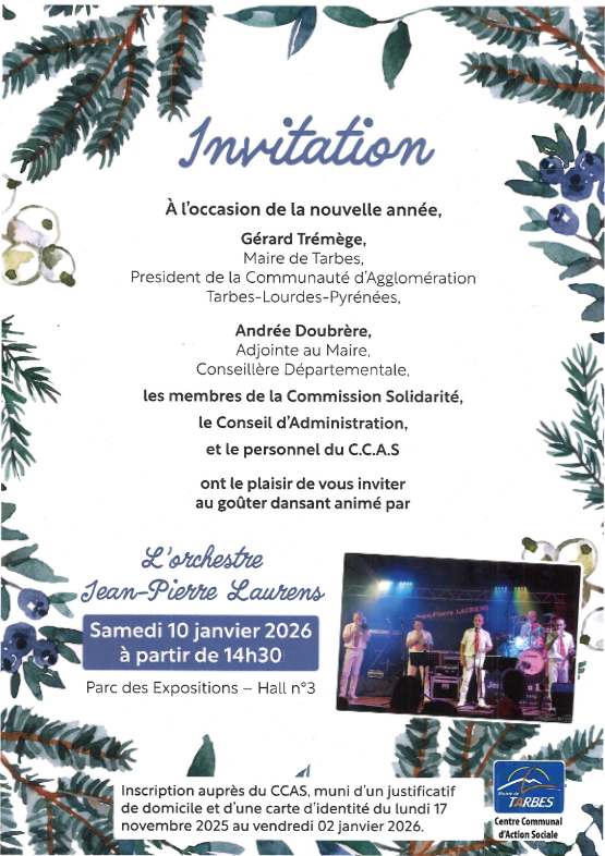 Ce gouter-dansant est proposé le samedi 10 janvier 2026 à 14h30 avec l’orchestre Jean-Pierre Laurens qui assurera l’ambiance musicale. À l’issue de l’après-midi, les participants recevront une boite de chocolats offerte par le CCAS.